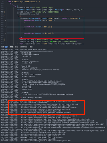 Android Mobile-SDK调用Transfer后获取不了txHash 创建TPManager.getInstance().transfer时报错
